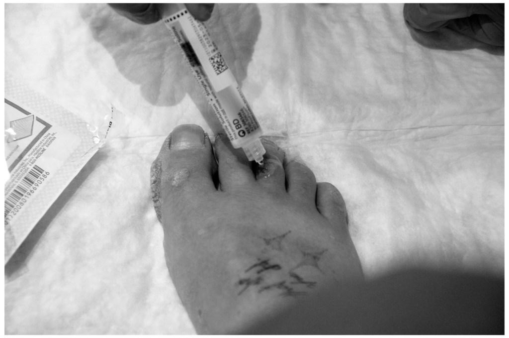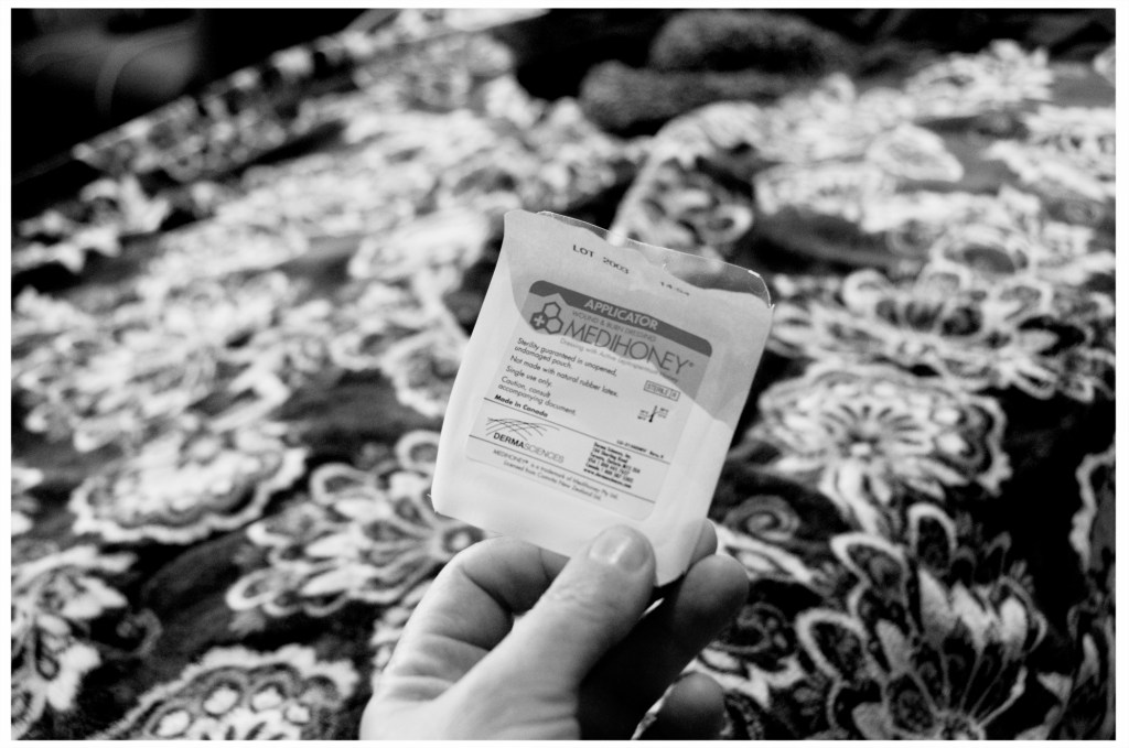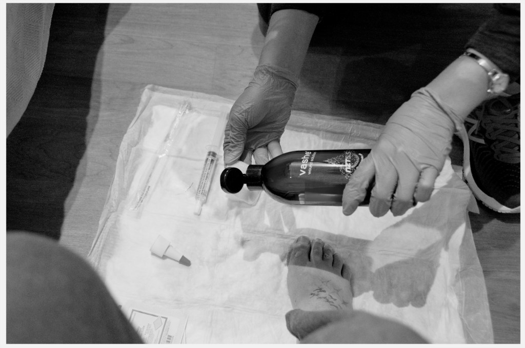 Wound Care was called in to consult and they recommended a Honey Wrap dressing. Ayesha was kind enough to help me with this, while I took a few shots. I rarely share feet pictures, but this is just part of my GATA2 journey.