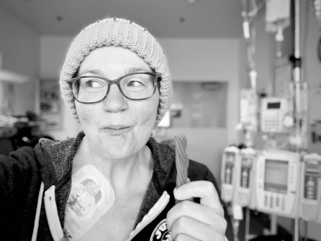 Today I spent a lot of time reading and just catching up with people, family, friends – it’s nearly 11 pm here, and my voice is hoarse, but not gone. I’m a bit cold, can feel myself shivering, so I’ve got a lovely warm hat on my head. The Christmas lights over my window have been going full-stop, as has my IV pole, Bart. He regulates the fluids and medications going into my body with a series of little clicks and snuffle sounding noises. This is Bart’s nice singing voice; only when he beeps loudly and annoyingly does he sing the song of his IV Pole People.
