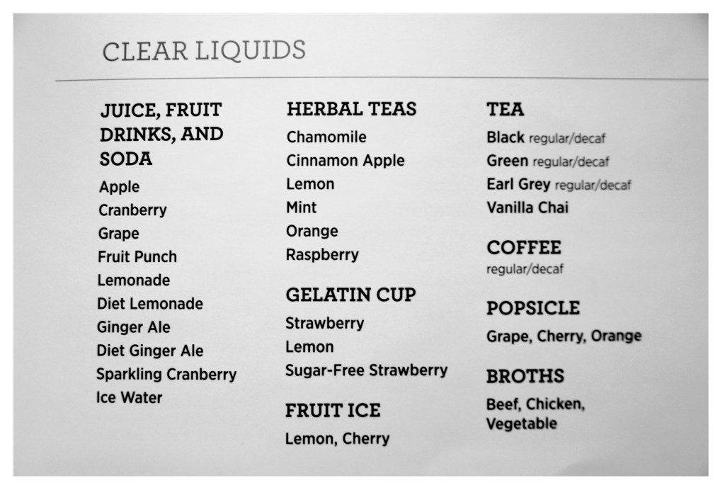 Today things got really wild and crazy when I drank a ginger ale and ordered an orange popsicle. What can I say? -I’m living on the edge. Actually, my Team took me off the “no eating/let’s let your gut rest” diet, and okayed me for Clear Liquids. And that’s cool, so I had a lot of Lemmon drop candies (thank you Melissa!), and later busted out the ginger ale. I’m still a little anxious about solids, given the diarrhea from the other day, I mean let’s be honest – you would be too.