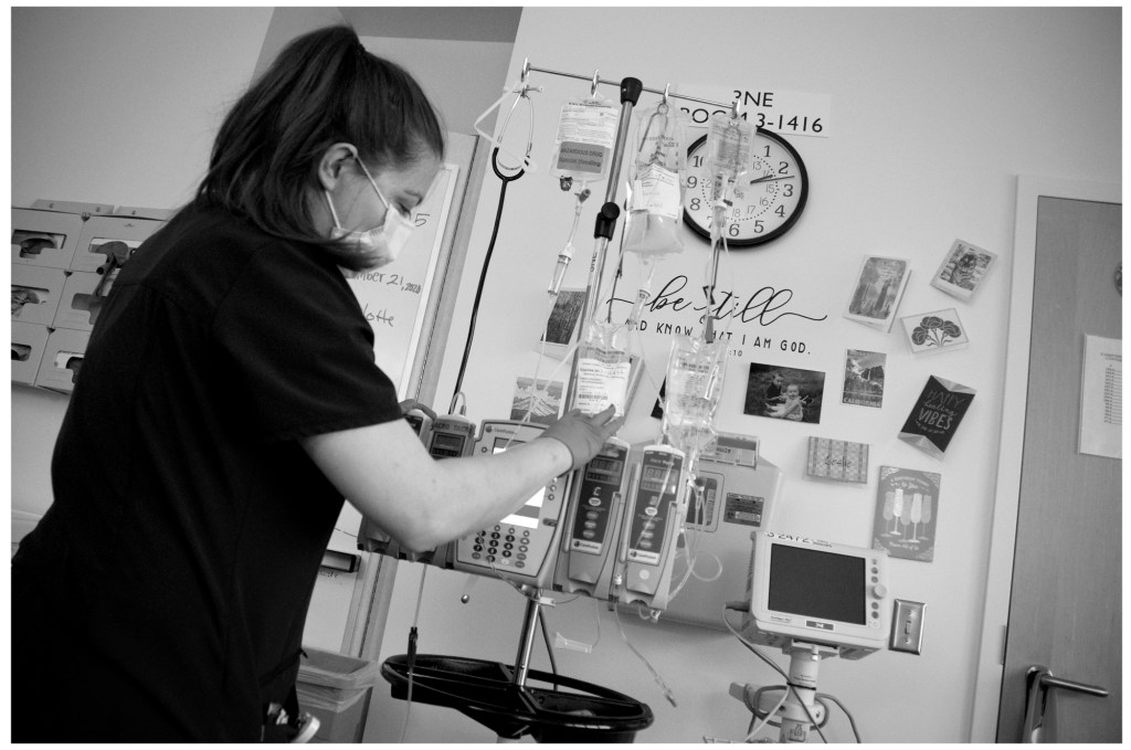 Charlotte, about to hook me back up to Bart. I was free for an hour while I showered and had my Central Line dressing changed. Alas, Bart came back.