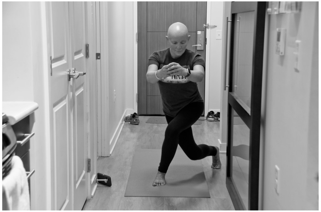 Photo of the Day: Attempting curtsey lunges during my virtual workout. Tomorrow I won’t be able to walk down a flight of stairs, but today I was proud of myself for the workout. And ow.