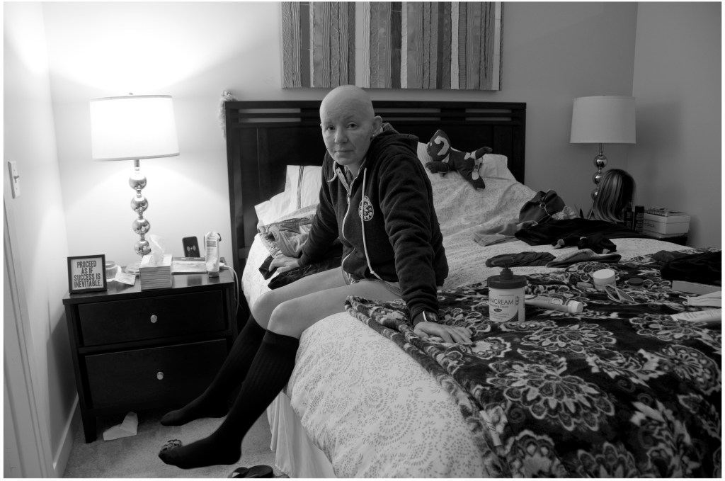This is just me, in the process of getting ready to leave the apartment. One day my face will be less puffy and I’ll have hair. The compression socks are tough to pull on – especially when I’m sore – but they provide an extra layer of insulation while keeping my ankles somewhat svelte, so I just deal with it. Whenever I leave the apartment, I try to make sure I’ve got extra lotions for my dry dry skin, and tons of layers to survive the cold, so packing and organizing is key. I forgot my chapstick once – nightmare. But yes, at Day +88, this is just me, getting ready.