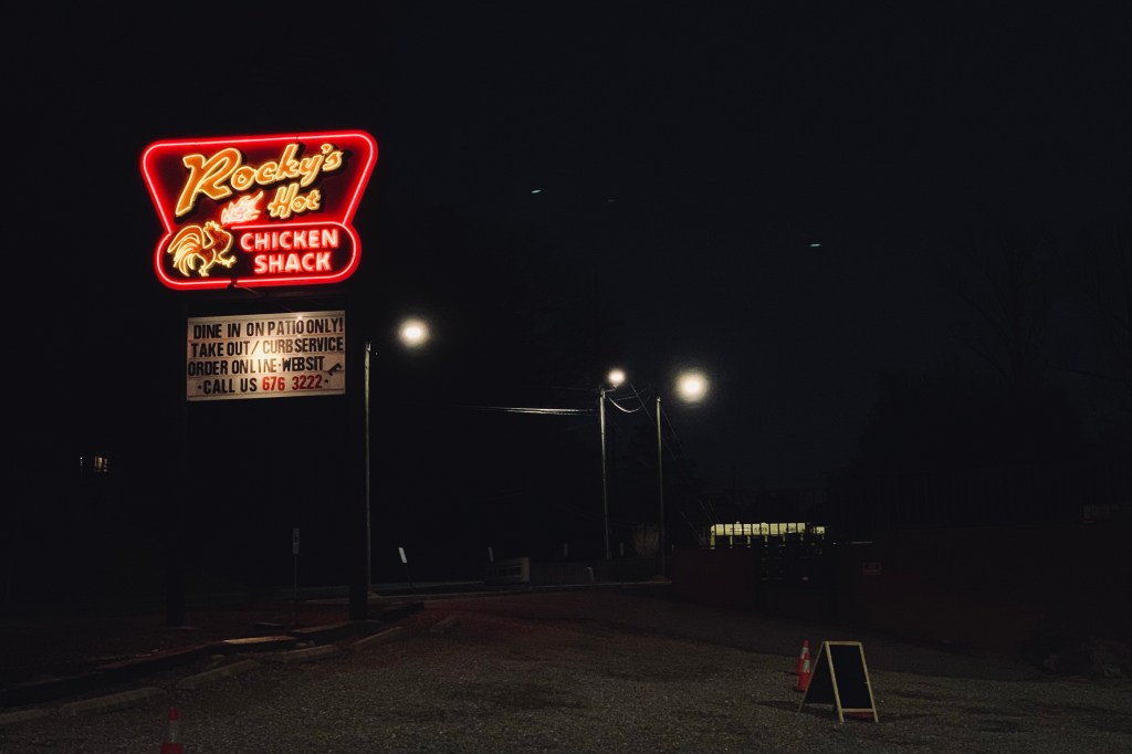 As soon as the sun set, the temperatures dipped in tandem. Andy and I stopped at Rocky’s Hot Chicken Shack (yes, that is the actual name) for dinner. I’m not comfortable eating inside or outside – so we enjoyed time together in my little car, which is comical for a 6’3 or 6’4 person like Andy – while waiting for our dinner to be delivered. He ordered something that made him 1) sweat 2) blow his nose, and 3) use the bathroom. I settled for the much safer “Chicken & Waffles”. As my first time enjoying this particular meal – I have to say that I would do it again; savory, sweet and a bit of a kick all in one.