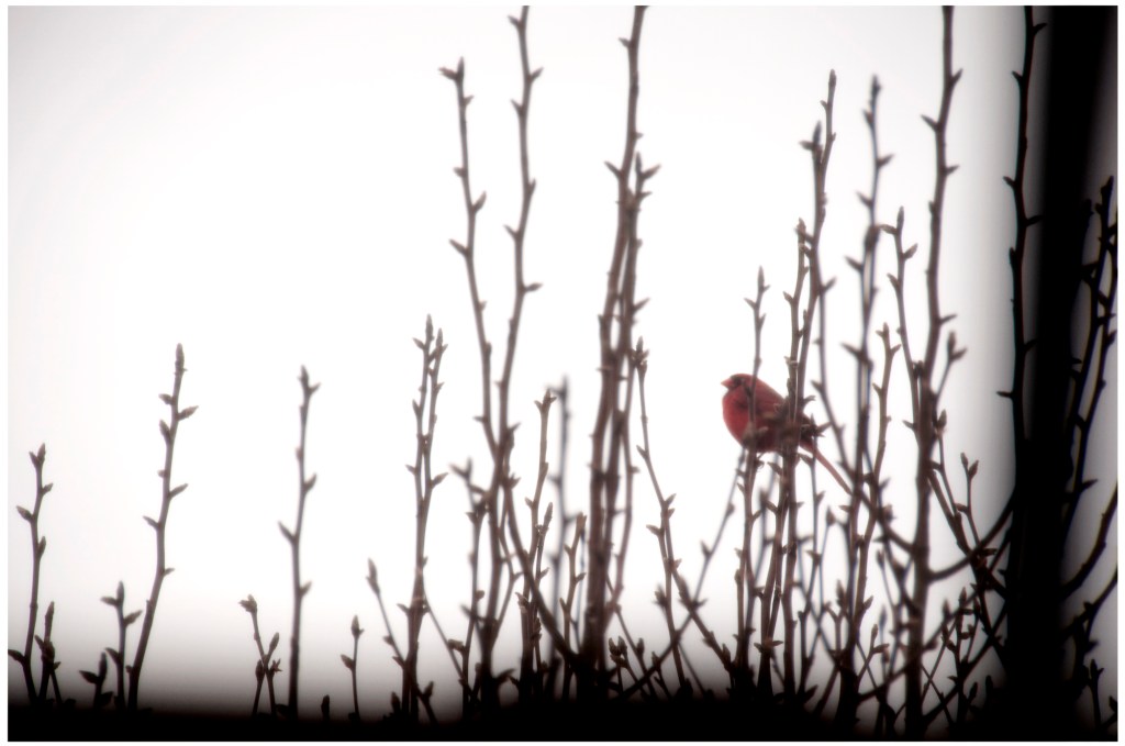 I love cardinals! I was lucky today – from my desk where I was working, I saw a few different pairs. A pop of red would fly by and I just watched, mesmerized.