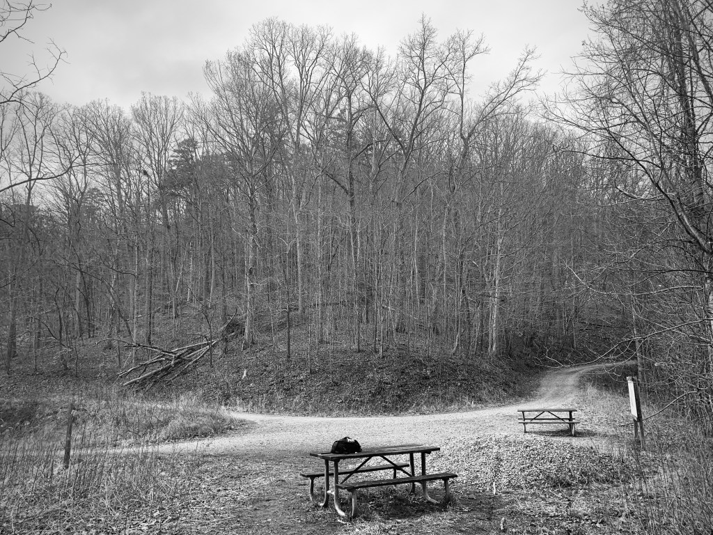 Happily, with my body feeling better, my emotional well-being & mindset was also improved. I’m putting that in the “win” category for sure. There were no tears today, and I actually felt productive in completing my morning tasks. Going out for my hike was a gift that I relished. It was a quick 2.5 miles up to Ledford Gap where I paused for a photo and to drink water (I love my Kidneys, I love my Kidneys). I really enjoyed padding silently through the forrest, hearing the occasional patter of rain drops on leaves, and smelling the fresh scent of fragrant pine.