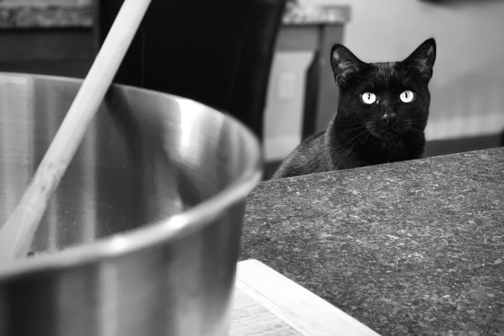 Photo of the Day (Wednesday): Monster assisting with making brownies. She gave me a reproachful look when I ate some of the batter. Or half. But it was the first time since I’ve had raw batter of ANY kind since my transplant 7 months ago. In the end, it was OK.