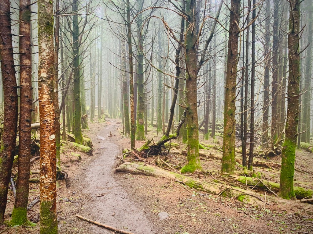Heading up to Grassy Ridge in the Roan Mountain Highlands. These are supposed to be some of the most beautiful mountains in the area – I still found them beautiful even with the fog, ethereal even.
