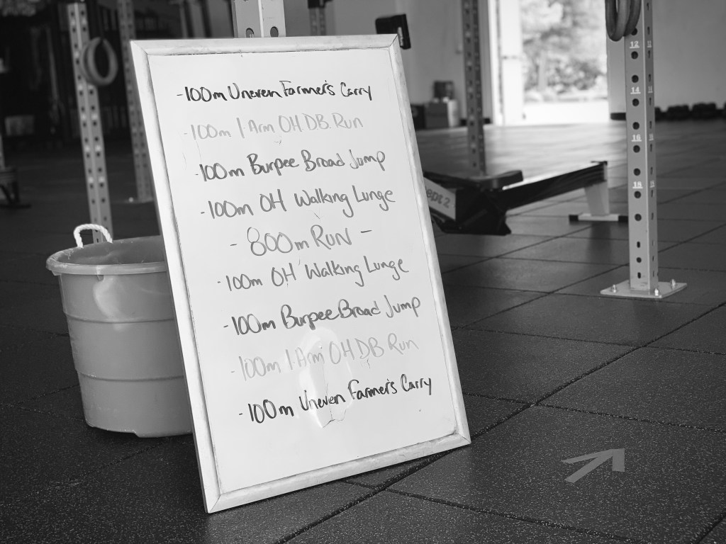 Photo of the Day (Wednesday v2.0): With a 25 minute time cap, I only made it to Round 2 of OverHead Walking Lunges. A part of me felt like I died during this workout and I never want to do lunges again. Ever.